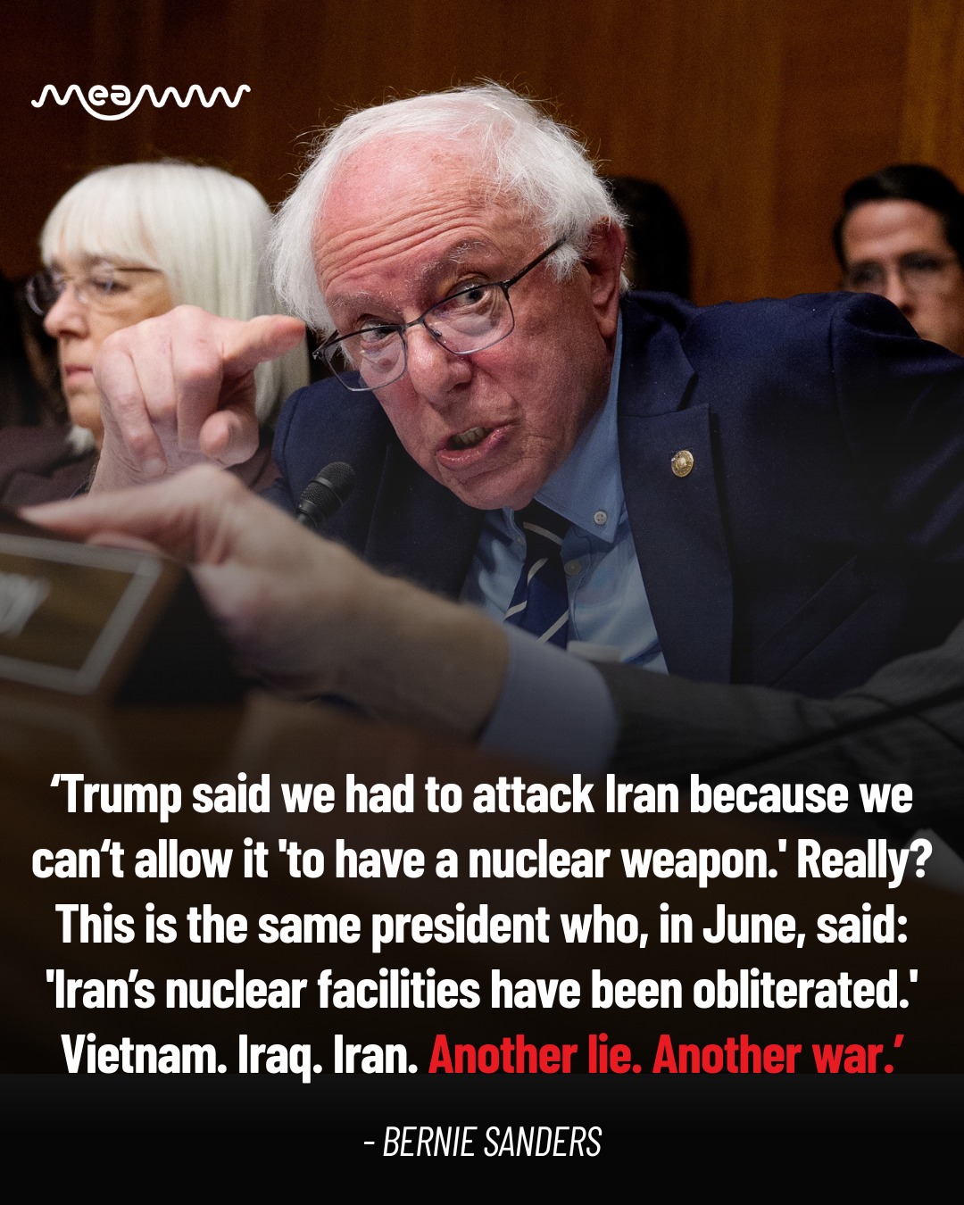 Bernie Sanders slammed Donald Trump’s justification for striking Iran, calling it another “lie” after wars in Vietnam and Iraq and warning that such actions risk dragging the U.S. into yet another costly conflict.