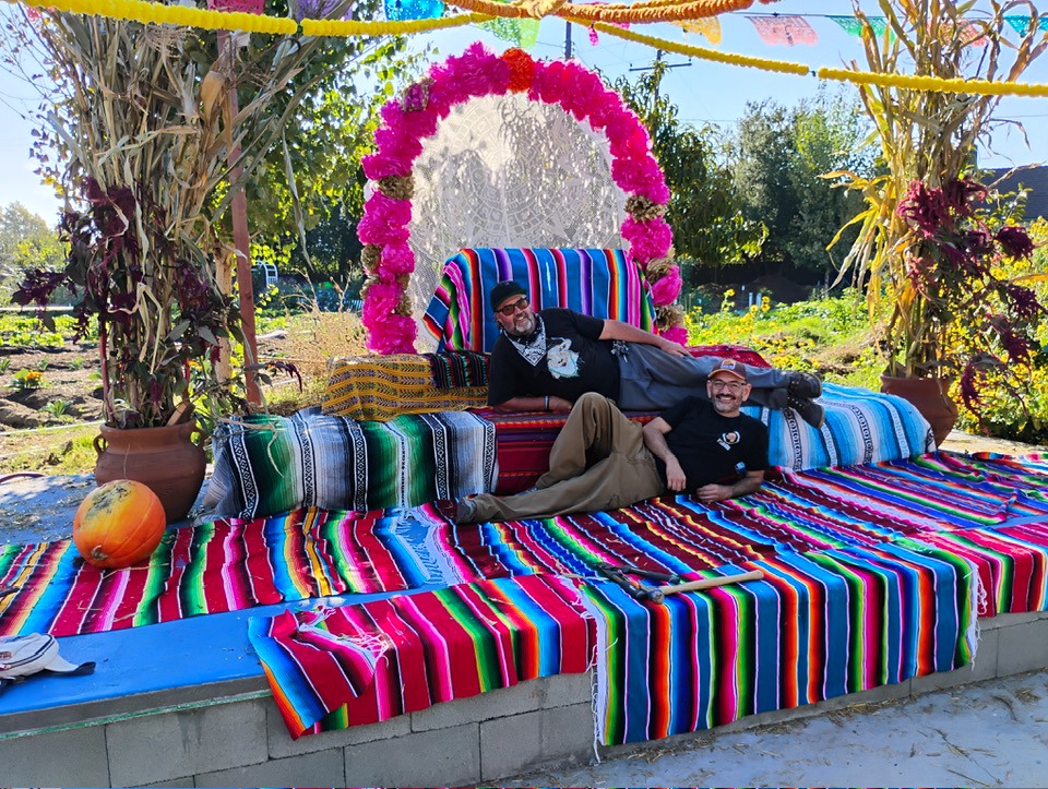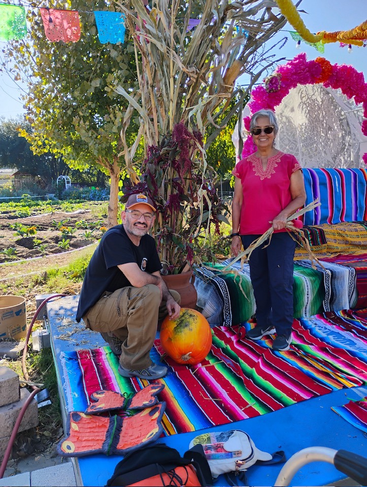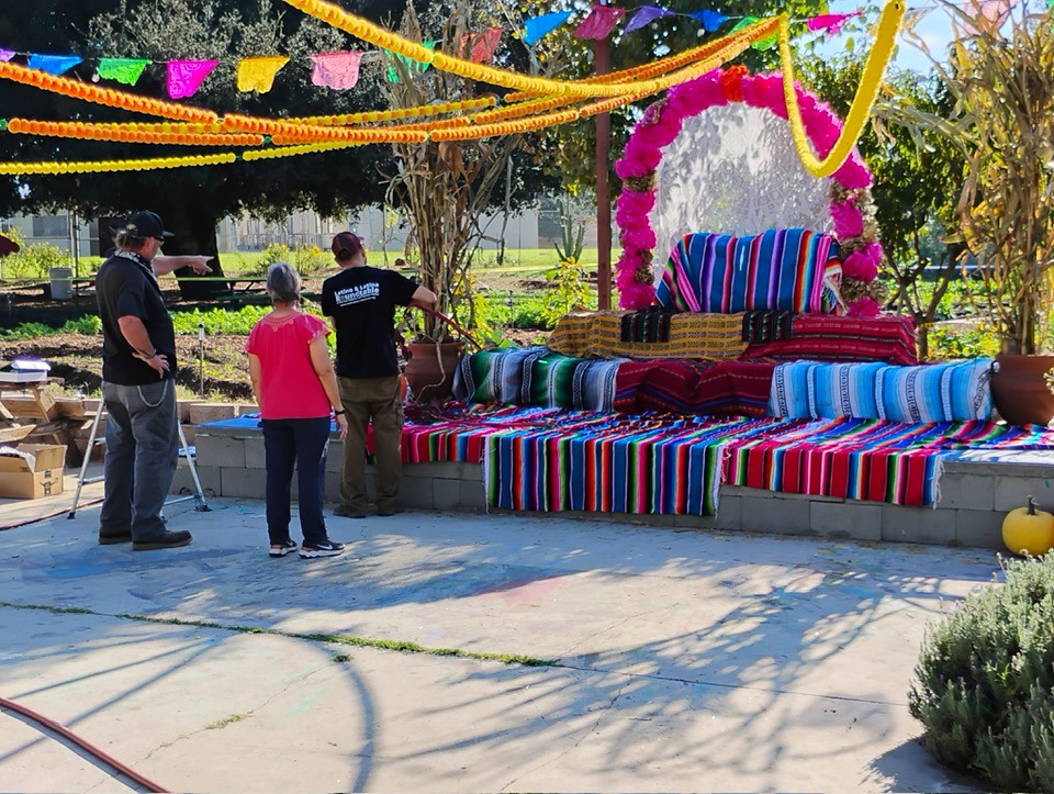 Preparing the altar and asking you to Join the Latino and Latino Roundtable, Urban Farm, and community for Dia de Muertos Celebration – 1-5 PM (Saturday, Nov. 1) at Lopez Urban Farm (1934 W. mission Blvd. In Pomona)