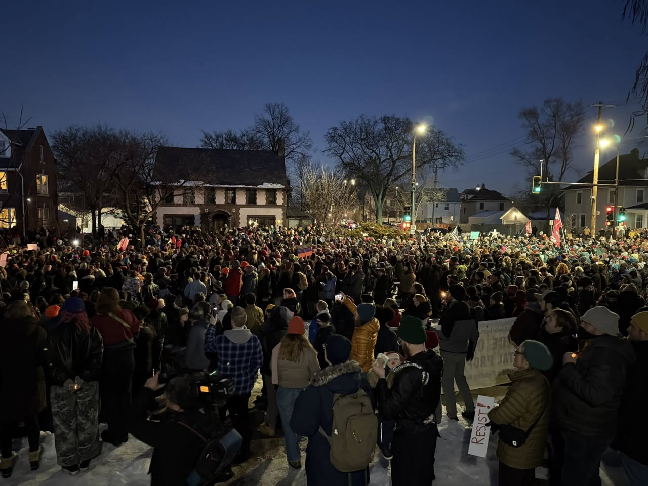 Thousands of Minnesotans gathered at tonight’s vigil for Renee Good who was shot in her car three times by ICE terrorists. We’re calling for ICE OUT OF MN!