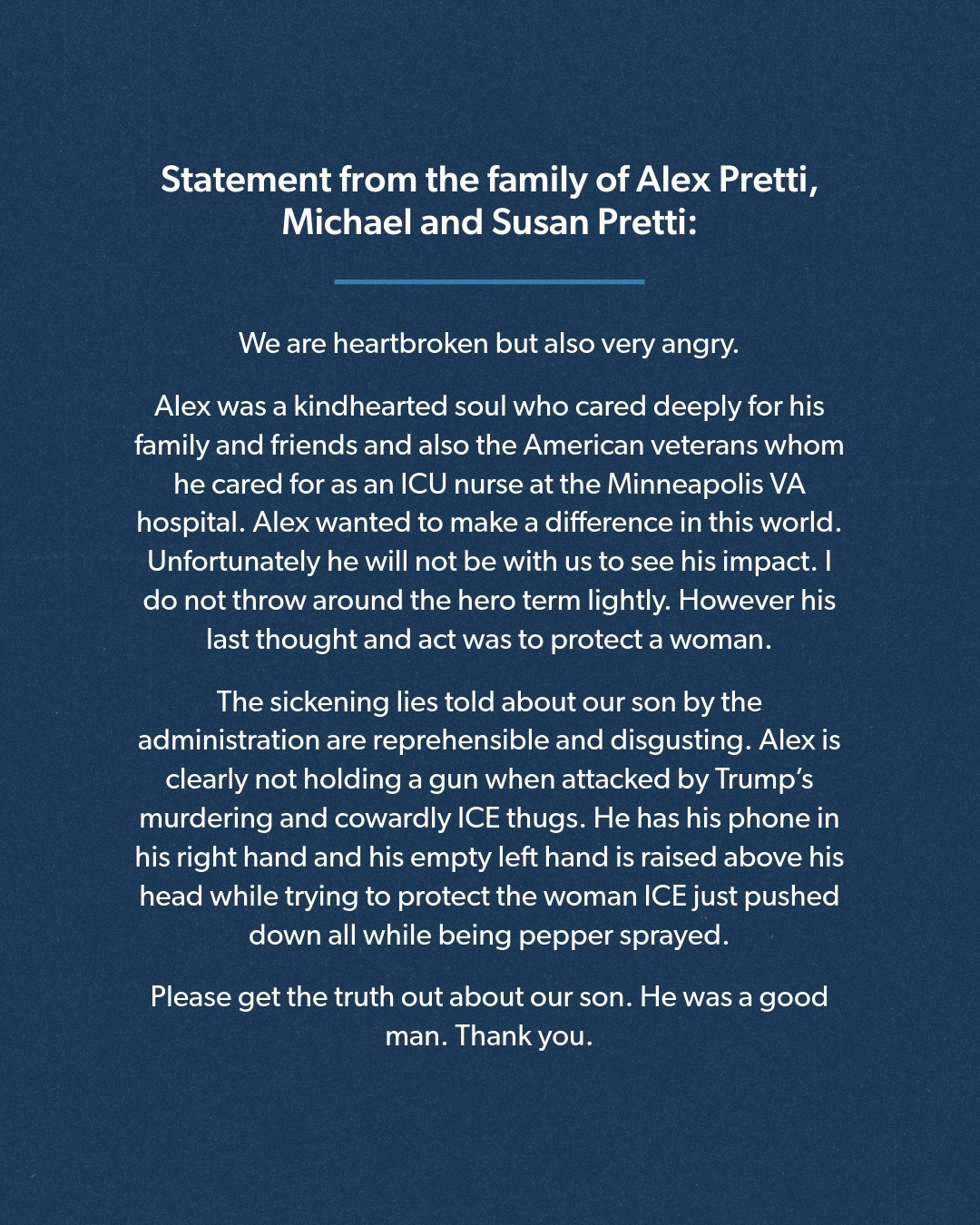 A statement from the family of Alex Pretti. Leave a reply A statement from the family of Alex Pretti.