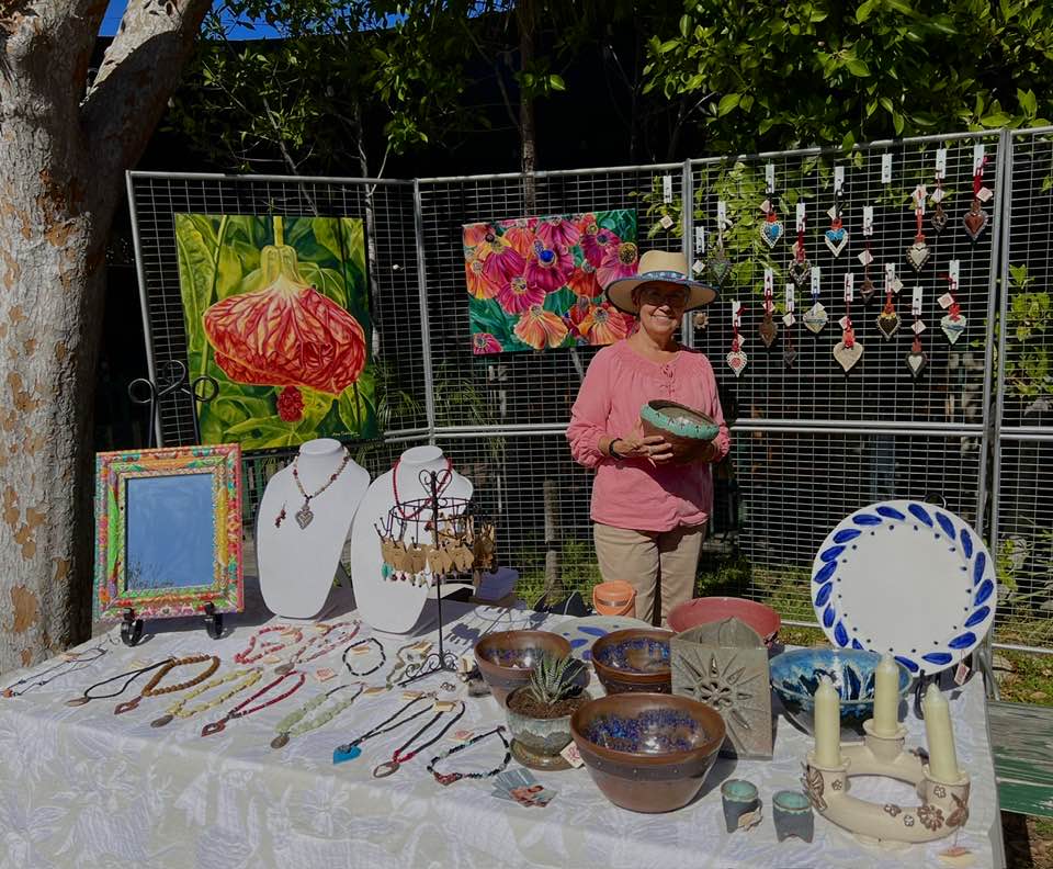 Rose with her art creations at ArtPark in Claremont.Adelante Rose.