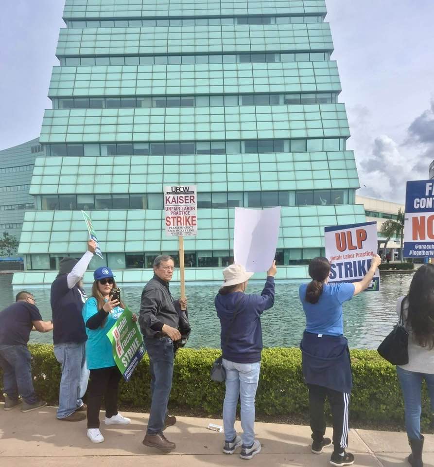 On the picket line supporting UNAC/UHCP (Nurses and Healthcare professionals) and UFCW members working in pharmacies and labs in their efforts to stop the unfair labor practices of Kaiser and to obtain a dignified contract for all unions in negotiations.